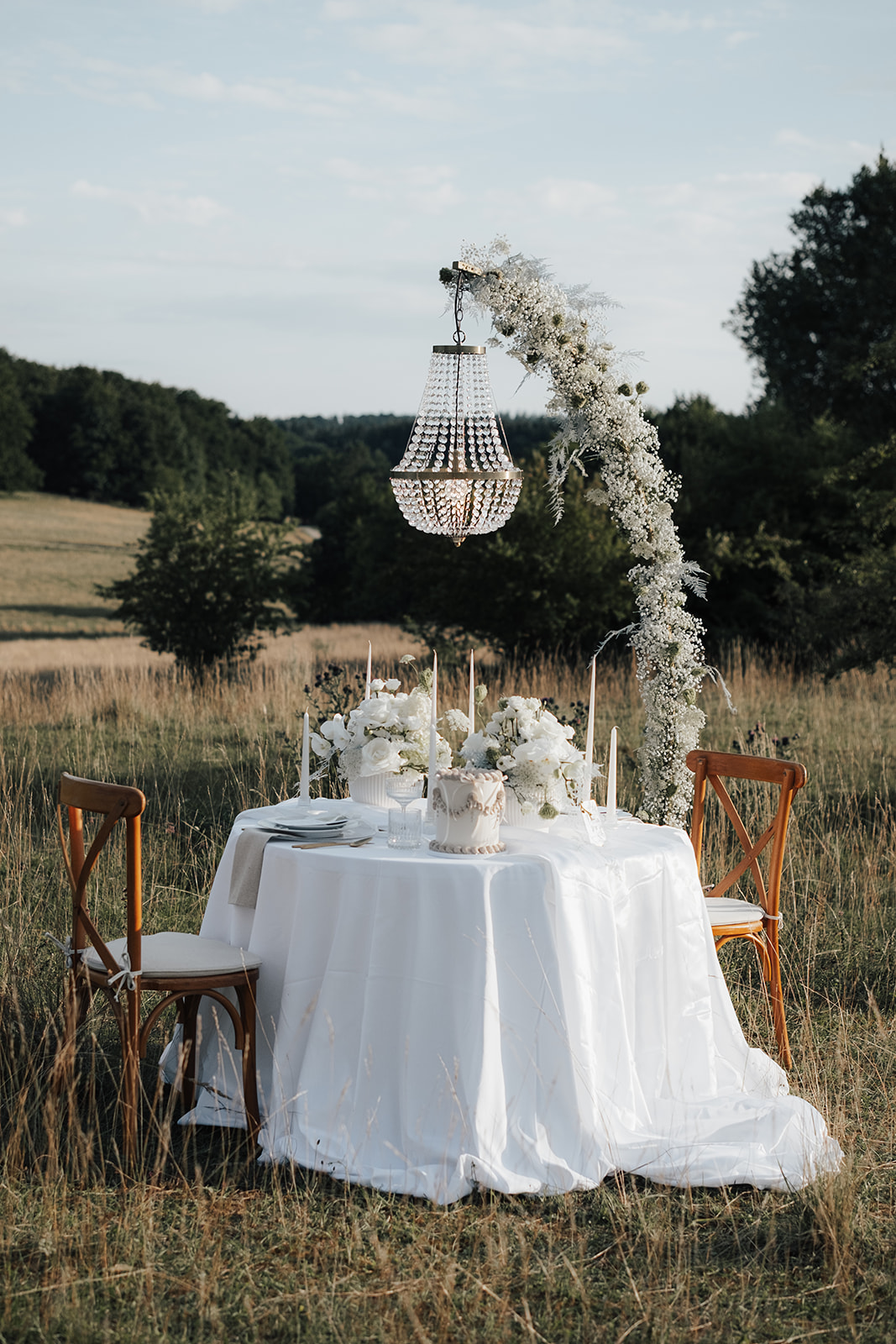 Dieser stabile Bogenständer wurde speziell für das Aufhängen von Kronleuchtern, Korbleuchten und dekorativen Hängelampen bei Events konzipiert. Er schafft einen eindrucksvollen Blickfang und verleiht Hochzeiten, Dinner-Settings und Eventflächen eine besondere Atmosphäre.