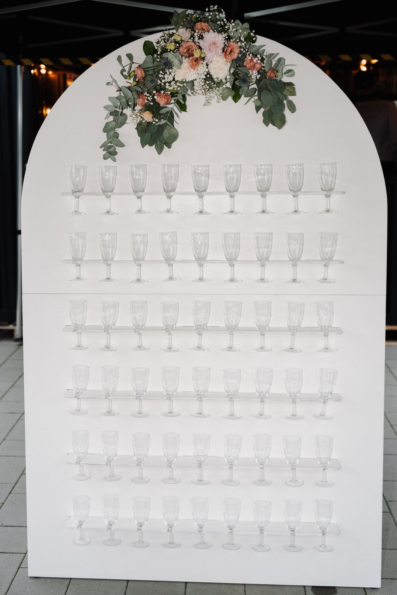 Diese elegante Sektwall ist der perfekte Hingucker für Eure Veranstaltung. Ob Hochzeit, Geburtstag oder Firmenfeier – sie sorgt für ein stilvolles Ambiente und bietet Platz für 45 -54 Sektgläser. Das integrierte Neonschild mit der Wahl zwischen den Schriftzügen „Cheers“, „Cheers to Love“, „Let`s Party“ verleiht der Wand einen modernen und festlichen Look. Mit ihrer kompakten Größe und der edlen schwarzen Farbe passt die Sektwand zu verschiedenen Veranstaltungsstilen und -themen.